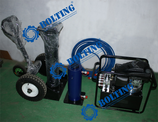 近日為河南某重工企業(yè)定制的移動(dòng)式液壓駕車機(jī)準(zhǔn)備發(fā)貨,因客戶現(xiàn)場(chǎng)工況受限,采用汽油發(fā)動(dòng)機(jī)動(dòng)力液壓泵作為動(dòng)力源,配備移動(dòng)駕車機(jī),50T通用型雙作用液壓千斤頂和10m的雙聯(lián)液壓油管,簡(jiǎn)便快捷的解決了重物頂升問題。