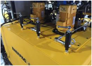 BOLTING博霆1600噸PLC控制全自動(dòng)同步頂升系統(tǒng)(數(shù)控智能油缸同步控制系統(tǒng))實(shí)驗(yàn)中