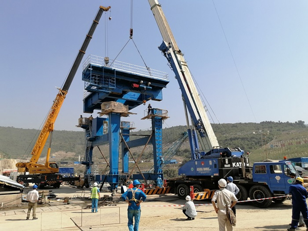 卡洛特尾水單向門機(jī)大梁整體吊裝順利就位