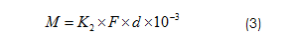 (3)式中:K2是擰緊力矩系數(shù);F表示為預(yù)緊力,F(xiàn)為式(1)計算得到的;d為螺紋公稱直徑。