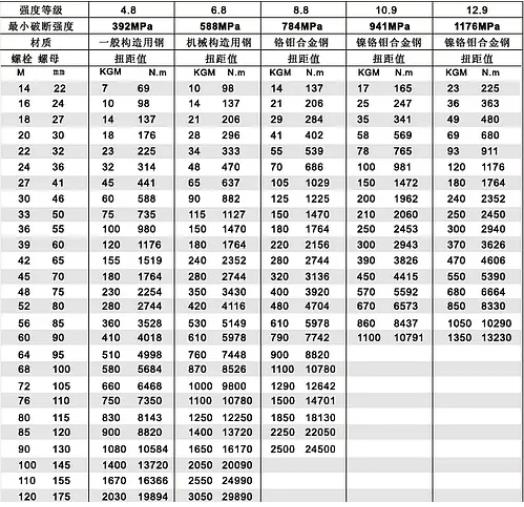計算的時候還要注意摩擦阻力、消耗力等影響因素,在實(shí)際計算時,液壓扳手實(shí)際輸出扭矩要小于理論輸出扭矩,大家可參考上面的液壓扳手扭矩對照表。